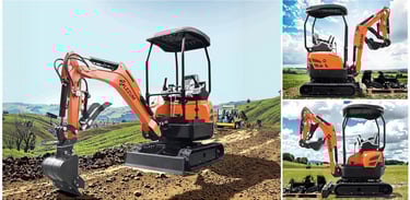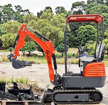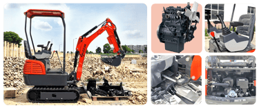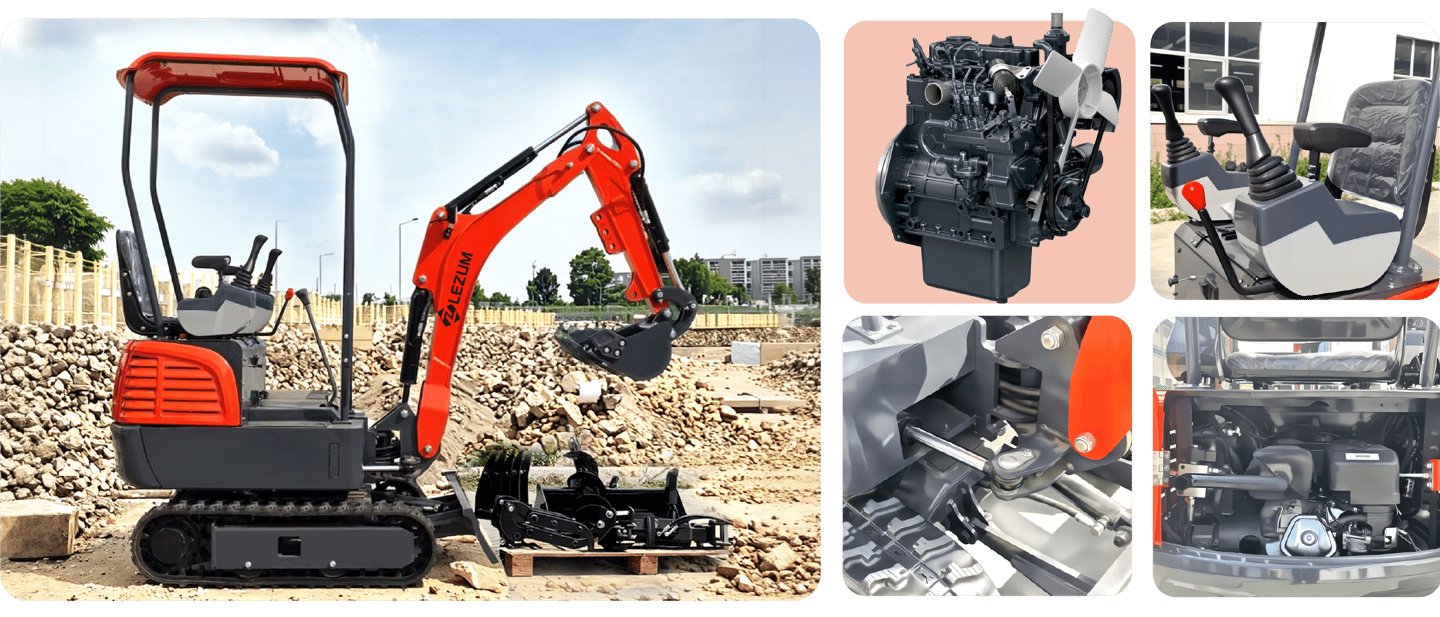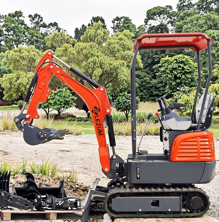 Miniexcavadora LEZUM DY18: Motor Kubota • Control hidráulico piloto