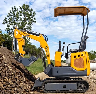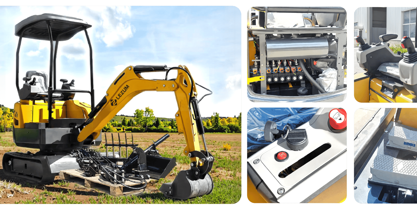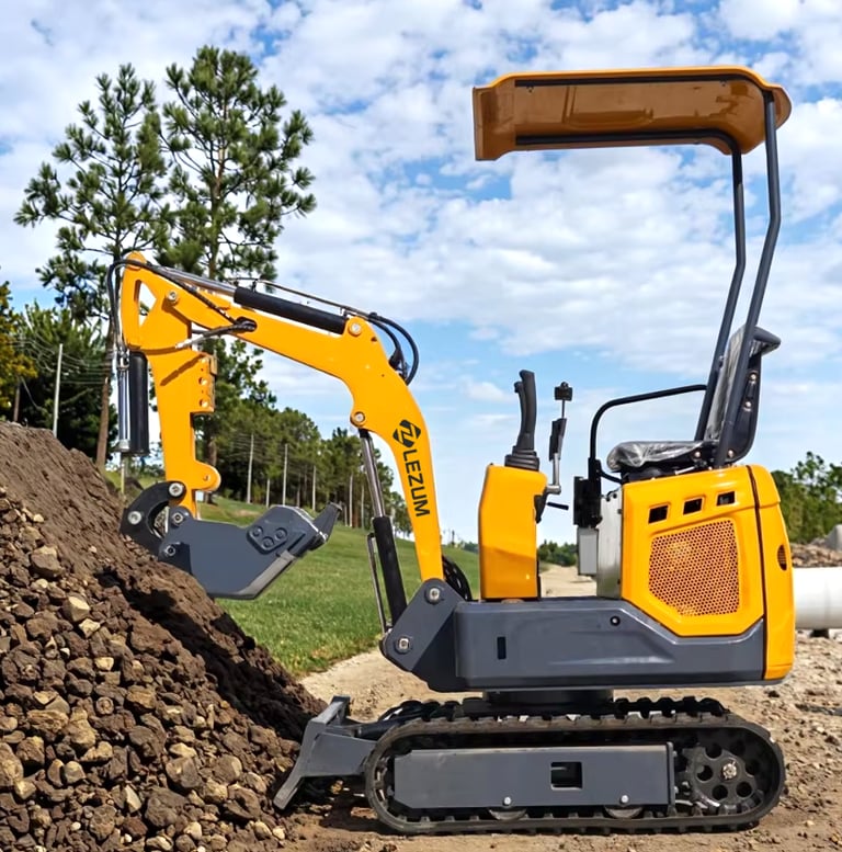 Miniexcavadora LEZUM DY10: Diseño compacto, rendimiento superior, fácil maniobrabilidad en espacios reducidos.